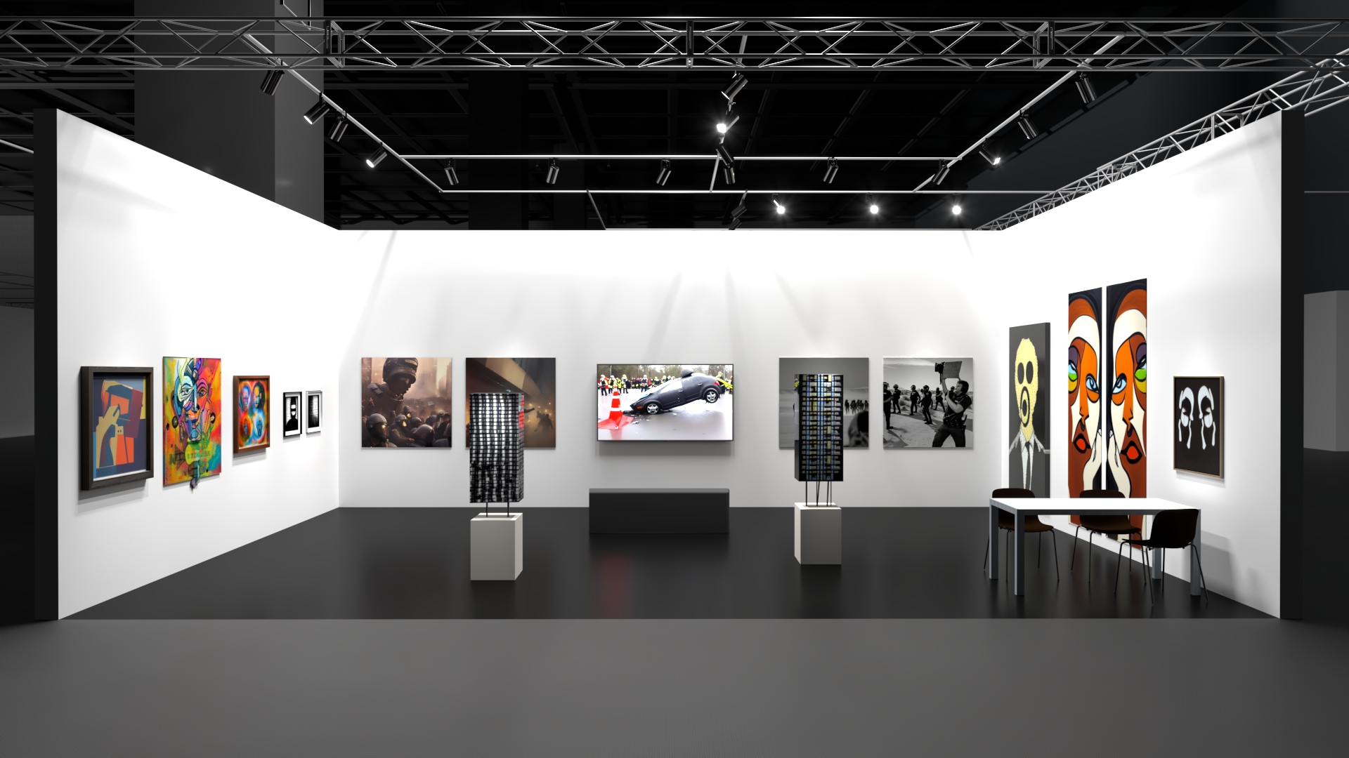 LARGE ART FAIR BOOTH RENDER CENTRAL FOCUS